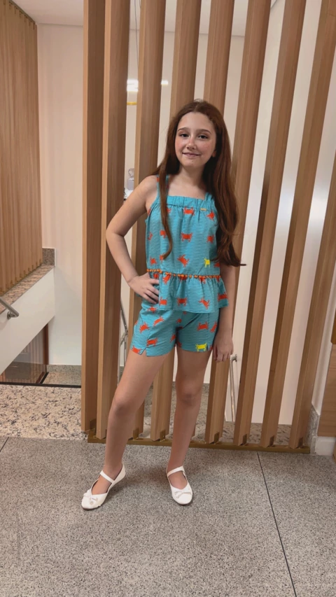 🌟 Destaques do Conjunto Precoce Luz Carangueijo: - Alças finas que valorizam o design - Shorts em tecido lactes, macio e sofisticado - Variedade de cores para combinar com seu estilo