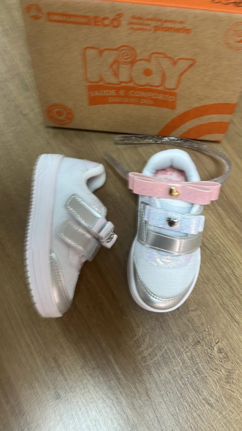 🌟 Destaques do Tênis Happy Kidy Branco com Prata: - Flexibilidade anatômica para liberdade de movimento - Velcro resistente e fácil de usar - Design brilhante que encanta e destaca