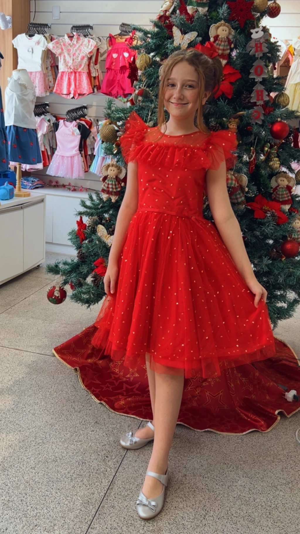 🌟 Destaques do Vestido Petit Cherie Luz: - Tule com estrelas delicadas que iluminam o visual - Caimento suave e acabamento primoroso - Ideal para momentos que pedem charme e requinte